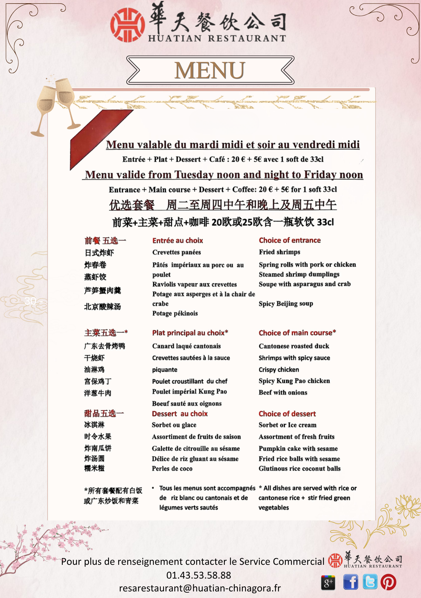 Entrance + main course + Dessert + Coffe : 20euros + 5euros for 1 soft 33cl.